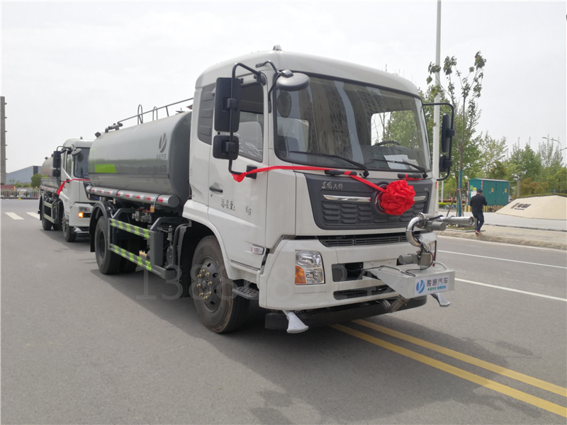 我公司產品標配前沖后灑、側噴、后置式工作平臺、平臺上有高壓軸承灑水炮(可360°旋轉,可調成柱狀最大射程 35米,也可調成霧狀最大射程15米,可調成:直沖狀、大雨、中雨、小雨、毛毛雨),配備優質大功率專用灑水泵,取力器,雜物過濾網,國標通用65型消防接口(可通過消防栓加水)、1套自流球閥系統(可自吸自排,可從河里或池塘抽水到罐體,最大吸程7米),2根引水鋼絲膠管。水泵、取力器、球閥、濾網均為國家標準產品,主管道加粗,法蘭墊、法蘭盤加厚,萬向前沖,大通徑球閥,具有性能優良,工作可靠、效率高、流量大、維修方便等特點。