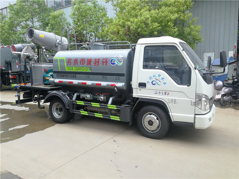 福田藍(lán)牌灑水車多少錢一輛_福田藍(lán)牌霧炮抑塵車,福田小卡二藍(lán)牌灑水車_國六藍(lán)牌霧炮車_藍(lán)牌三方灑水車_湖北盈通專用汽車有限公司,功能配置:罐體有效容積9噸,采用武鋼4mm 優(yōu)質(zhì)碳鋼一次卷壓無縫成型,部分配灑水泵,帶前沖、后灑、側(cè)噴、后工作平臺(tái)及灑水高壓炮。配消防接口、自流閥,2根與罐體等長輸水管,水位計(jì),1個(gè)爬梯,兩側(cè)及后杠。灑水泵自吸高度為7米,出水量為60立方米每小時(shí),灑水寬度大于14米,后工作平臺(tái)水炮可調(diào)成直沖狀、大雨、中雨、小雨、毛毛雨,直沖射程25米左右,霧狀射程15米左右。(可選配:錳鋼罐體、加粗管道、駕駛室一鍵操作、氣動(dòng)控制、罐體防腐、高端灑水泵)