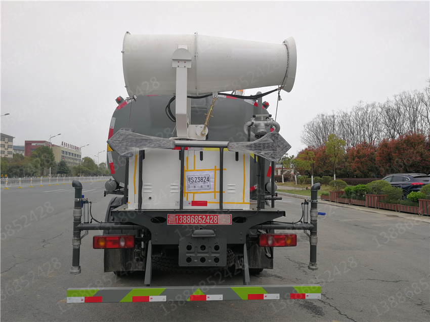 2、后噴灑;裝有兩只可噴淋后灑裝置,主要對路面進行保潔和壓塵,呈扇形噴灑時,灑水寬度可達10m以上。