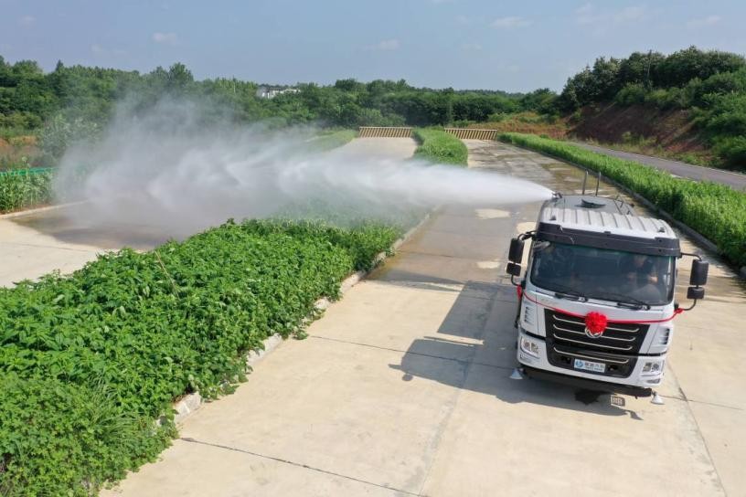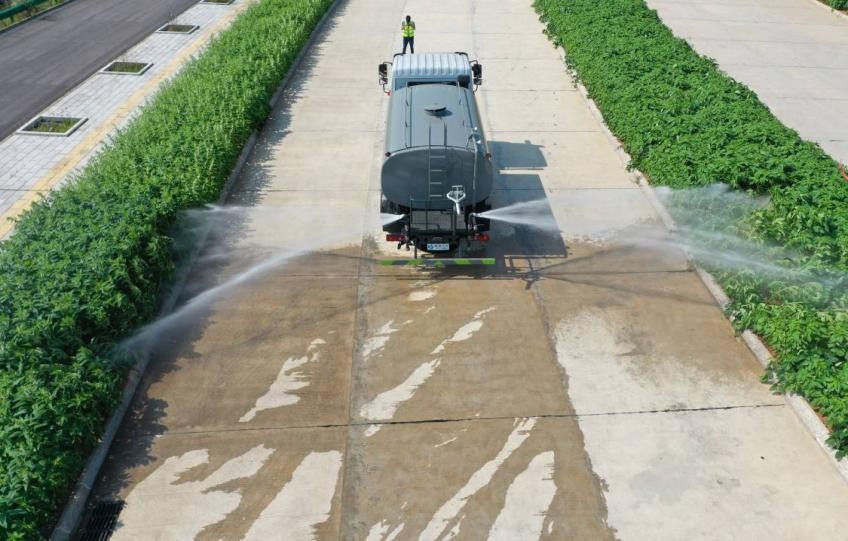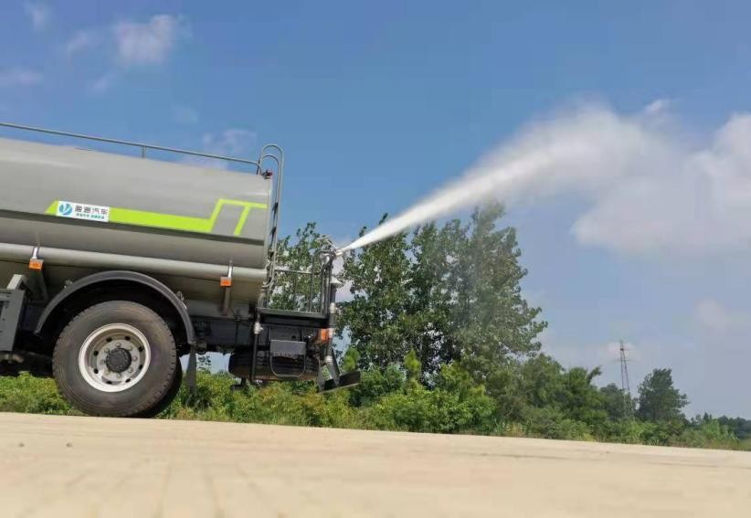 我公司產品標配前噴(鴨嘴)、后沖、后灑、側噴、后置式工作平臺,平臺上配置綠化水炮(可 360°旋轉,既可以調成柱狀,也可以調成霧狀,更可以調成直沖狀、大雨、中雨、小雨、毛毛雨),配備優(yōu)質大功率專用灑水泵(可自吸自排,可從河里或池塘抽水到罐體),取力器,雜物過濾網(wǎng),消防接口,自流球閥系統(tǒng)、取力器、球閥、濾網(wǎng)均為國家標準產品,主管道加粗,法蘭墊、法蘭盤加厚,大通徑球閥。整體具備性能優(yōu)良安全可靠、效率高、流量大、維修方便等特點。