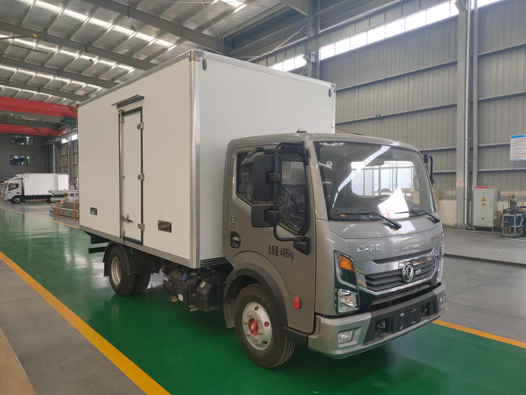 東風凱普特星云4.2米冷藏車采用東風輕型發(fā)動機或玉柴發(fā)動機,采埃付5擋變速箱,NPR沖壓后橋(帶制動襯片磨損報警),7.00R16輪胎,斷氣剎、單排翻轉、車載無線服務控制器(T-BOX)、ABS、離合助力、動轉,
